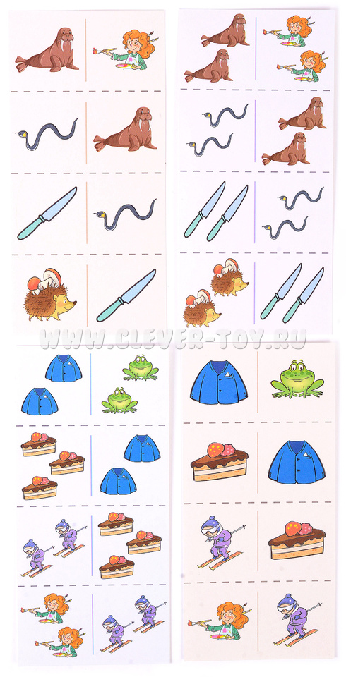 В комплект входят 12 карточек, 48 картинок и 9 игр.
