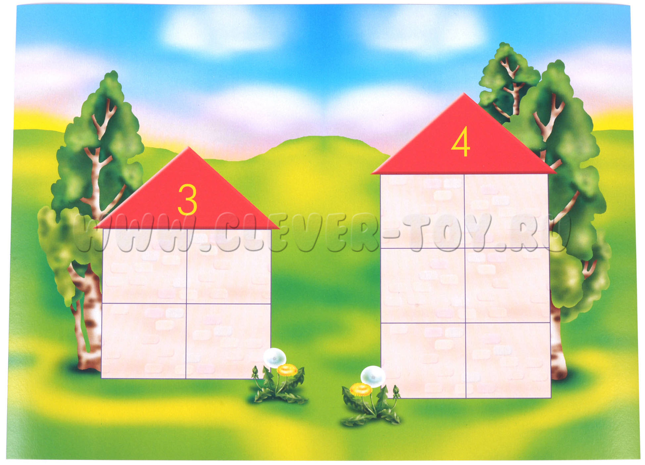 - Положите перед ребенком карту с числовым домиком. Предложите ему подумать, из каких чисел состоит то число, которое "живет" в домике. Например, число 3 можно составить из 1 и 2, а можно из 3 и 0. Чем больше число, тем больше появляется квадратиков, которые нужно заполнить.