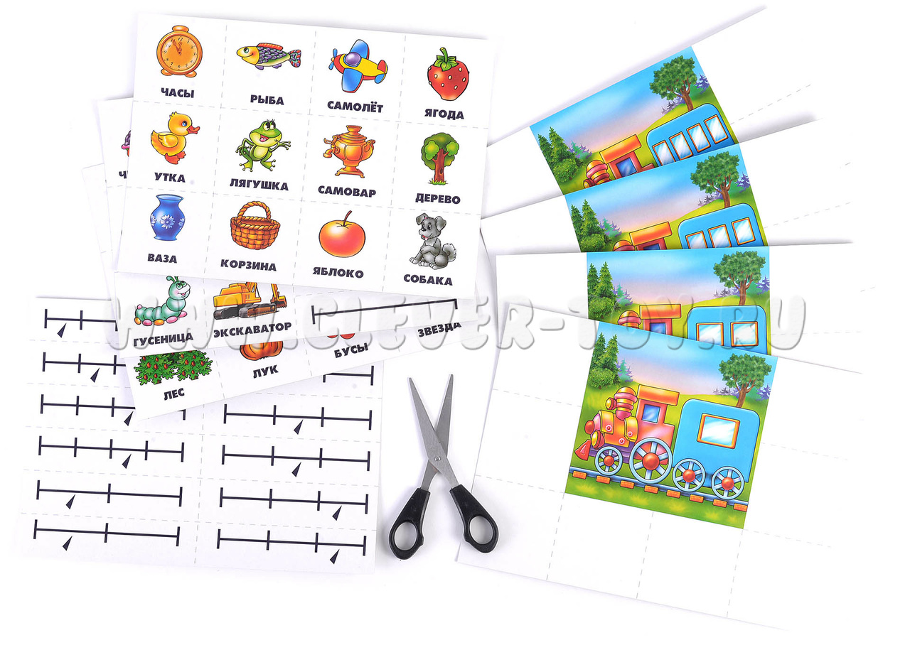 - Раскладываем карточки со словами на больших картах по вагончикам (например, если вагончик с 3 окошками - слова из 3 слогов).