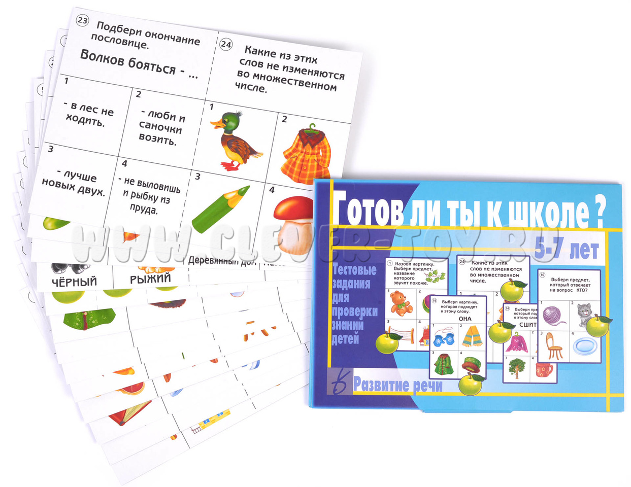 Тестовые задания для проверки знаний детей "Готов ли ты к школе? Развитие речи" отлично подойдут для занятий с детьми от 5 до 7 лет и помогут родителям, желающих подготовить своих малышей к школе. Изготовленные из качественного картона, карточки формата А4 содержат в себе иллюстрированные тестовые задания с вариантами ответа (по 4 варианта в каждом задании). Материал поможет проверить степень развития основных навыков дошкольника: внимания, памяти, логики, речи – важнейшего не только для успешной учебы, но и для повседневной коммуникации навыка.