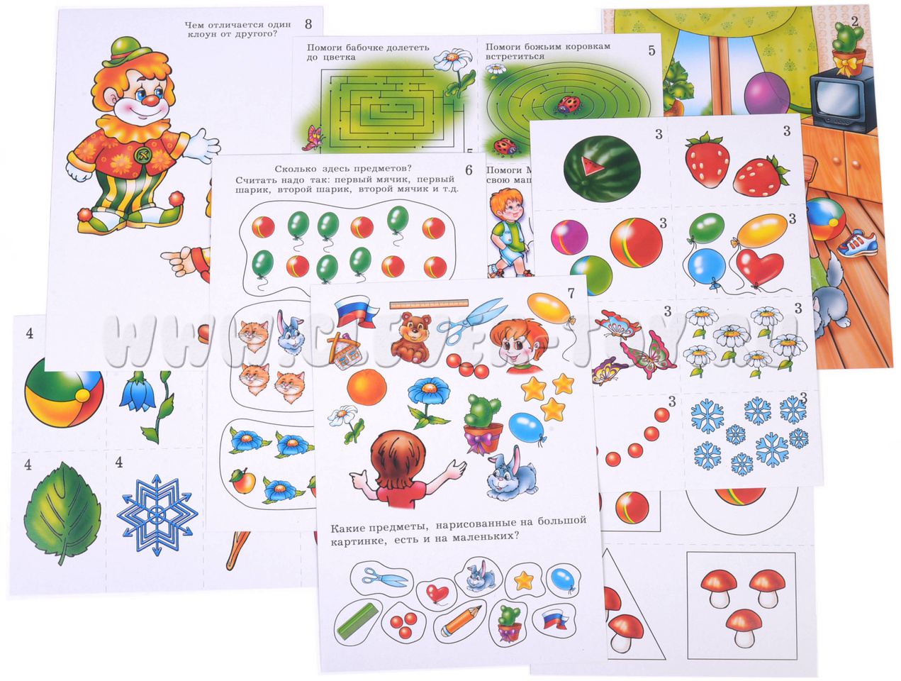 В наборе 8 карт формата А4 и удобная папка для хранения. Перед началом игры некоторые карты необходимо аккуратно разрезать по пунктирным линиям. Все задания нацелены на тренировку произвольного внимания и памяти и подразумевают одновременное запоминание предметов, их количества, формы, последовательности. Каждая карточка – отдельное задание.