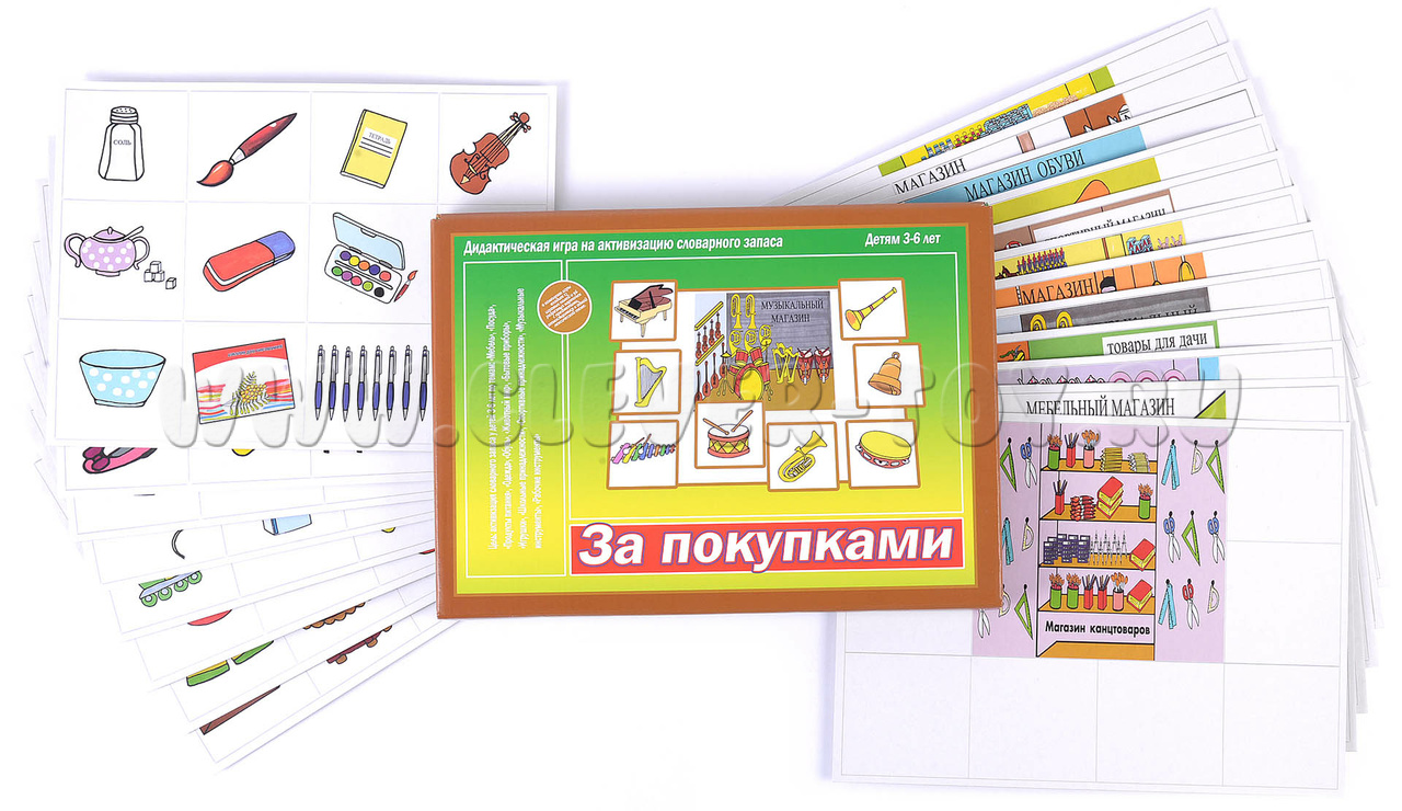 Развивающая игра-лото для детей 3-6 лет поспособствует увеличению словарного запаса. Перед началом игры требуется разрезать карты по пунктирным линиям (получится 12 карт с игровыми полями и 96 карточек с предметами).