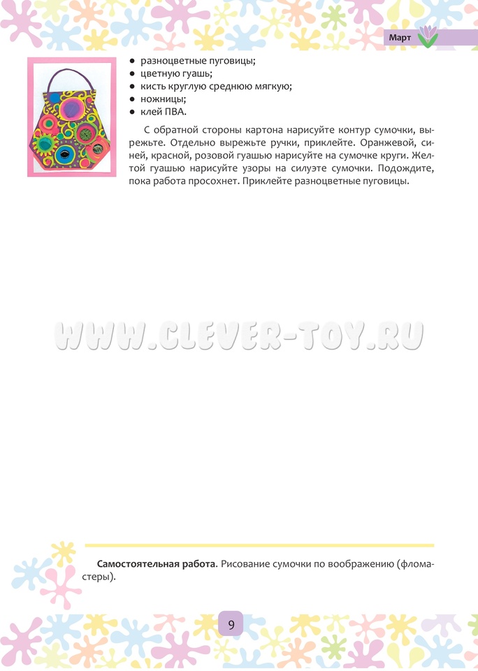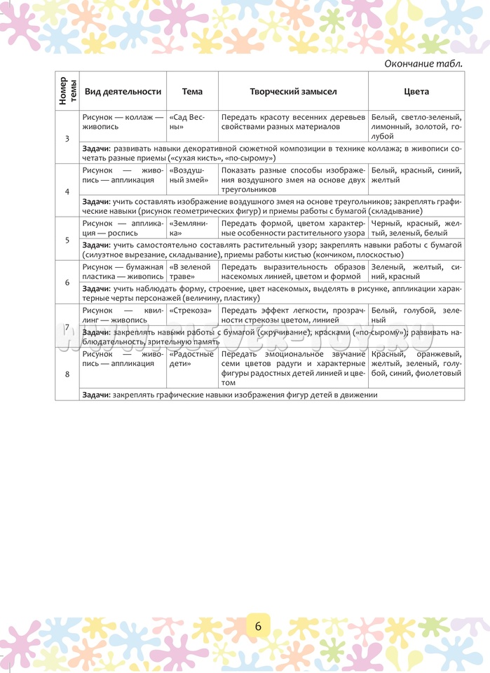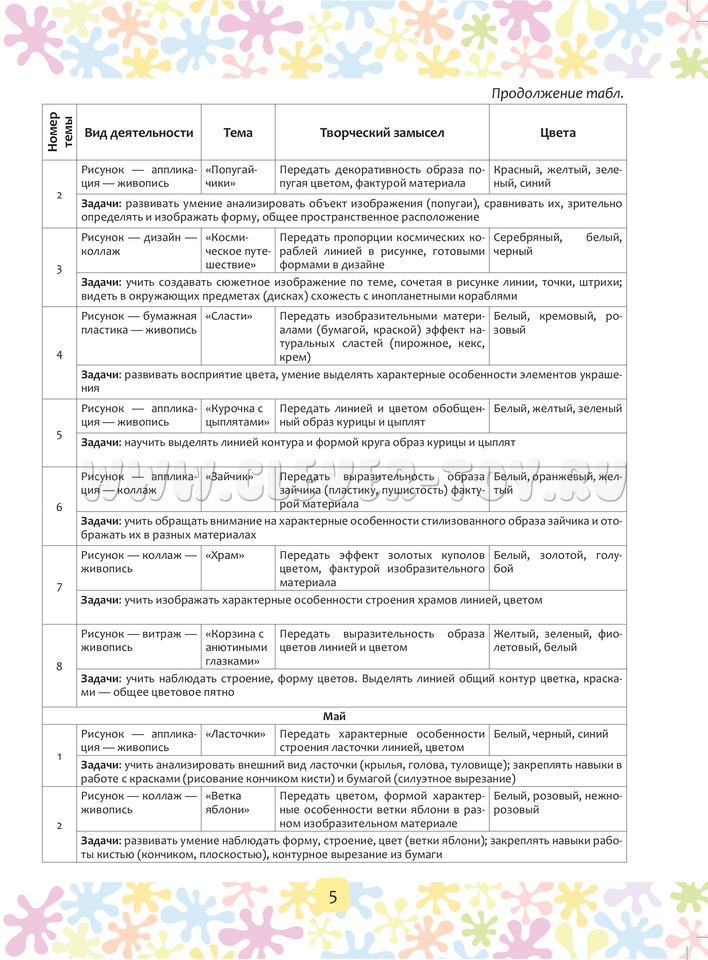 Книга содержит методические рекомендации по изобразительной деятельности, конспекты по совместной деятельности взрослого с детьми на период с марта по май включительно, наглядный материал для детей (6-7 лет) старшего дошкольного возраста. Пособие входит в авторскую программу «Цвет творчества», которая направлена на формирование художественных навыков и умений, развитие творческих способностей дошкольников в области цвета, графики и композиции.