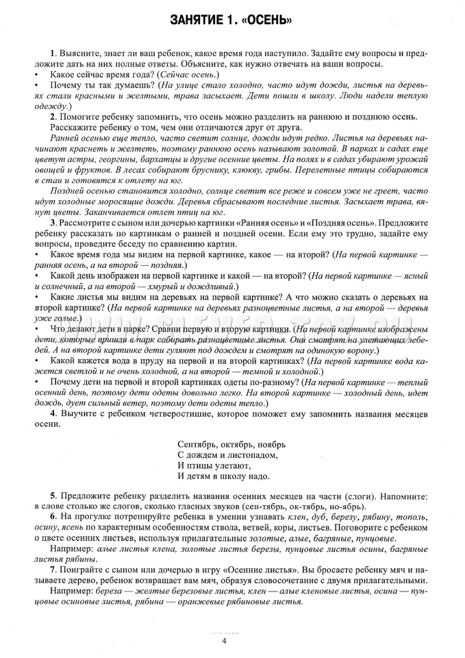 Тетрадь содержит 15 занятий, рассчитанных на неделю. Задания направлены на развитие связной речи, поддержание диалога, звуковой анализ слов, составление предложений и тренировку памяти. Также присутствуют пальчиковая гимнастика и подвижные упражнения.
