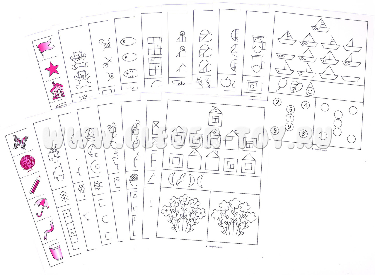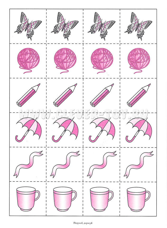 • дорисуй картинки, чтобы они стали одинаковыми и многое другое.
