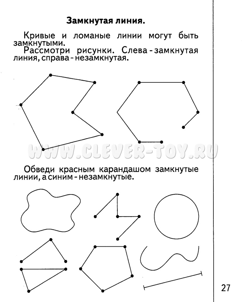 Малыши освоят такие понятия, как точка, линия, угол, луч, отрезок, прямая, ломаная, замкнутая линии.