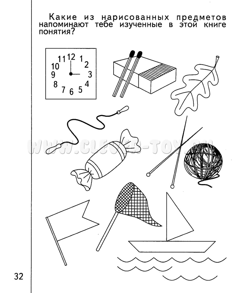 - покажи и раскрась те предметы, которые по форме похожи на кривую линию;