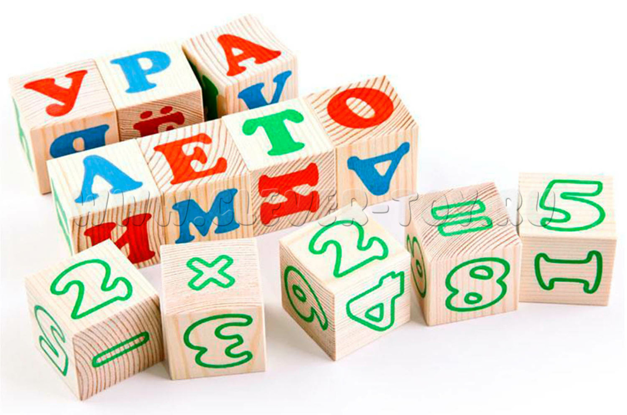 В состав входит 20 кубиков с нанесенными буквами русского алфавита и цифрами.