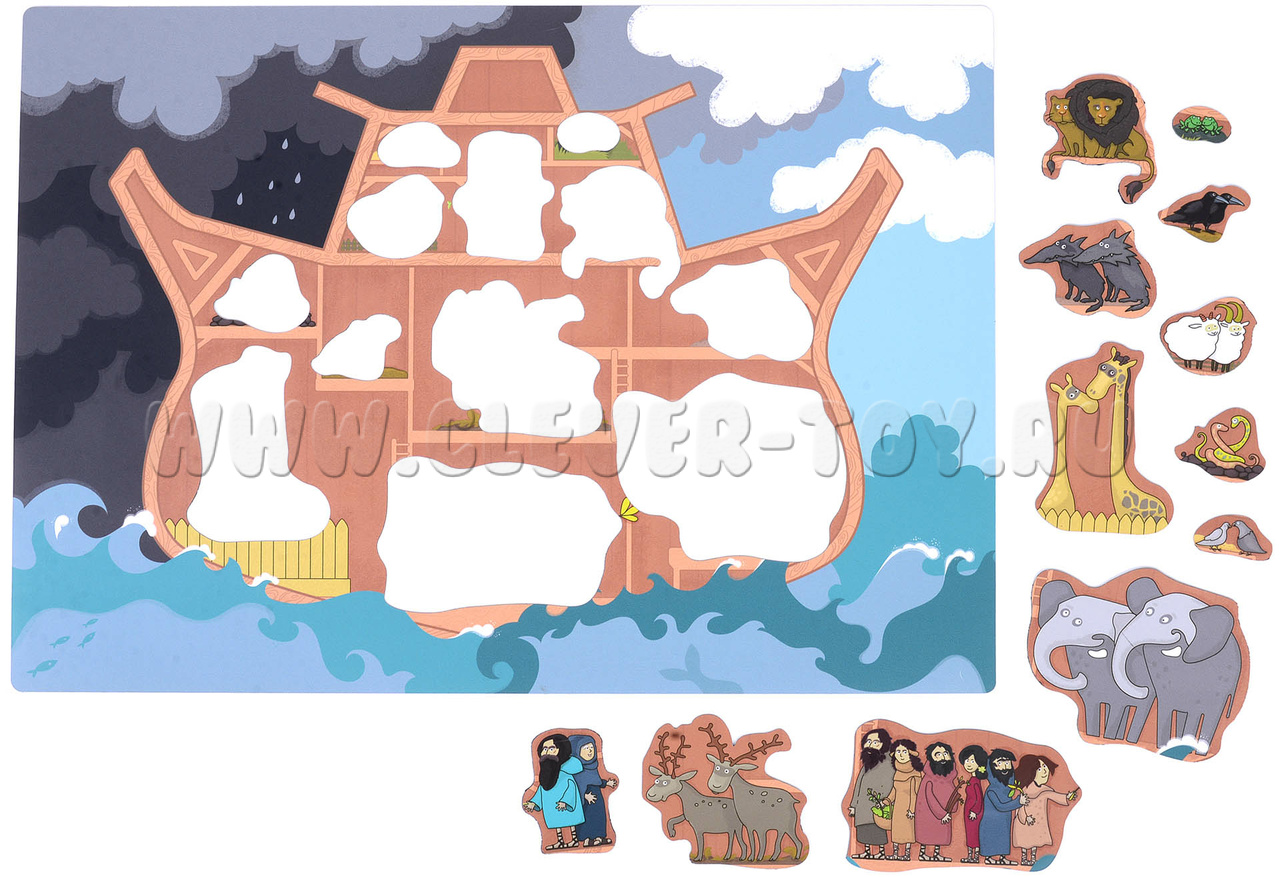 Как играть: Перед вами магнитный Ковчег, вокруг которого сгущаются тучи. Нужно успеть разместить на нём Ноя с семейством, жирафов, волков, оленей, воронов и всех остальных, пока не разразилась гроза.