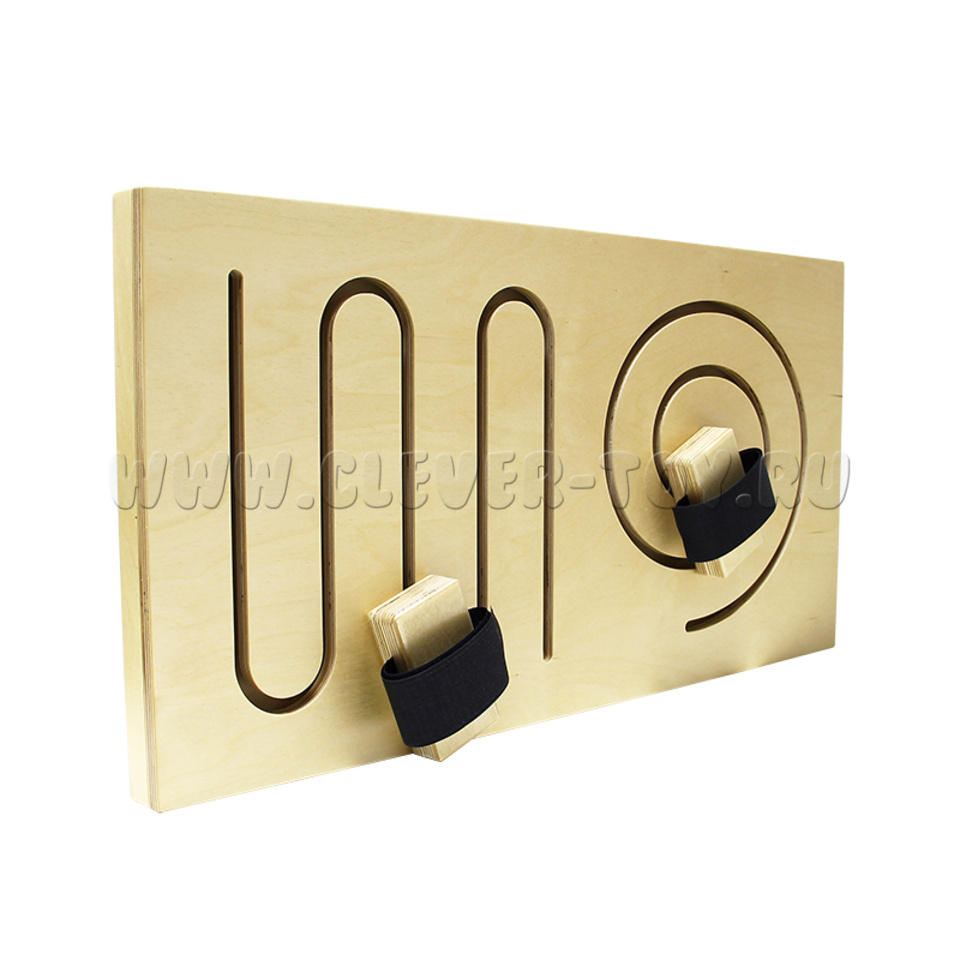Лабиринт предназначен для развития двигательных навыков. Панель может устанавливаться на столе или крепиться к стене на удобной высоте. Крепления одеваются на руки или на ноги.