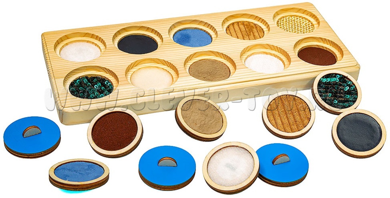 2. Разложите на столе все кружочки и предложите ребенку подобрать "замочек" к каждому "домику". Детям постарше предложите более сложный вариант игры. Переверните все "замочки" фактурной поверхностью вниз, попросите ребенка закрыть глаза и выбрать один из "замочков". Задача игрока – определить на ощупь фактурную поверхность "замочка" и закрыть соответствующий "домик".