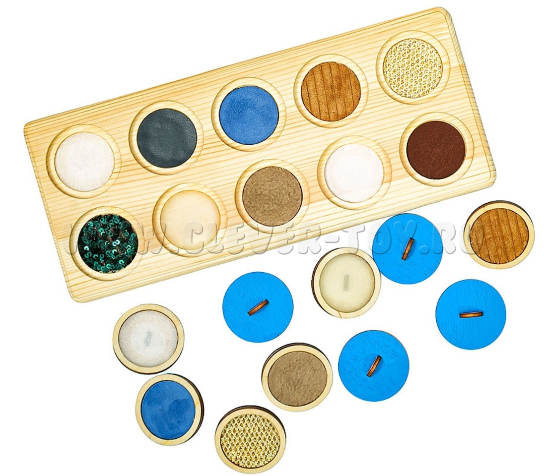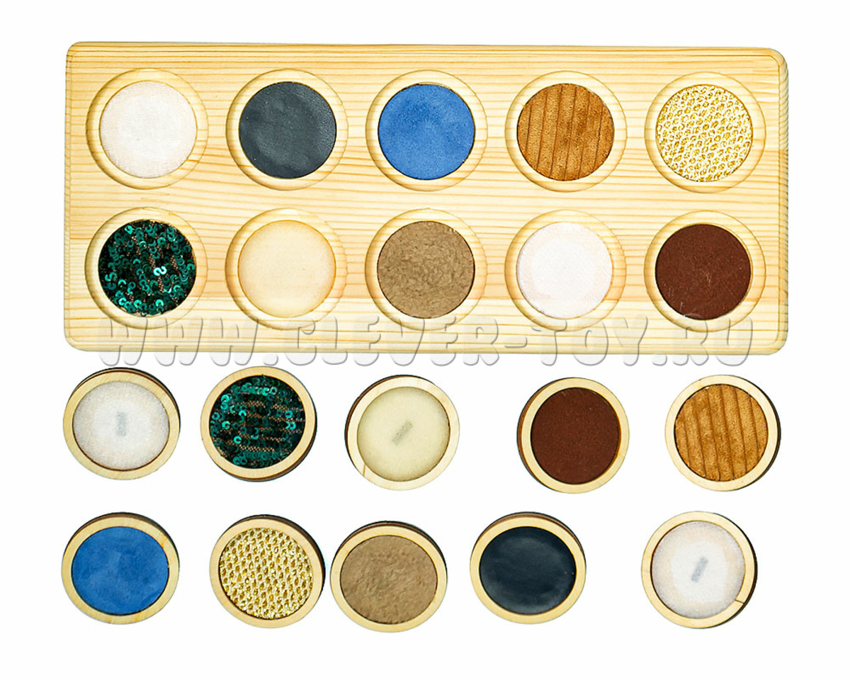 3. Сложите все кружочки в непрозрачный мешочек. Предложите ребенку опустить руку в мешочек, выбрать один из кружочков и на ощупь определить, какой домик на планшете имеет такую же фактурную поверхность.
