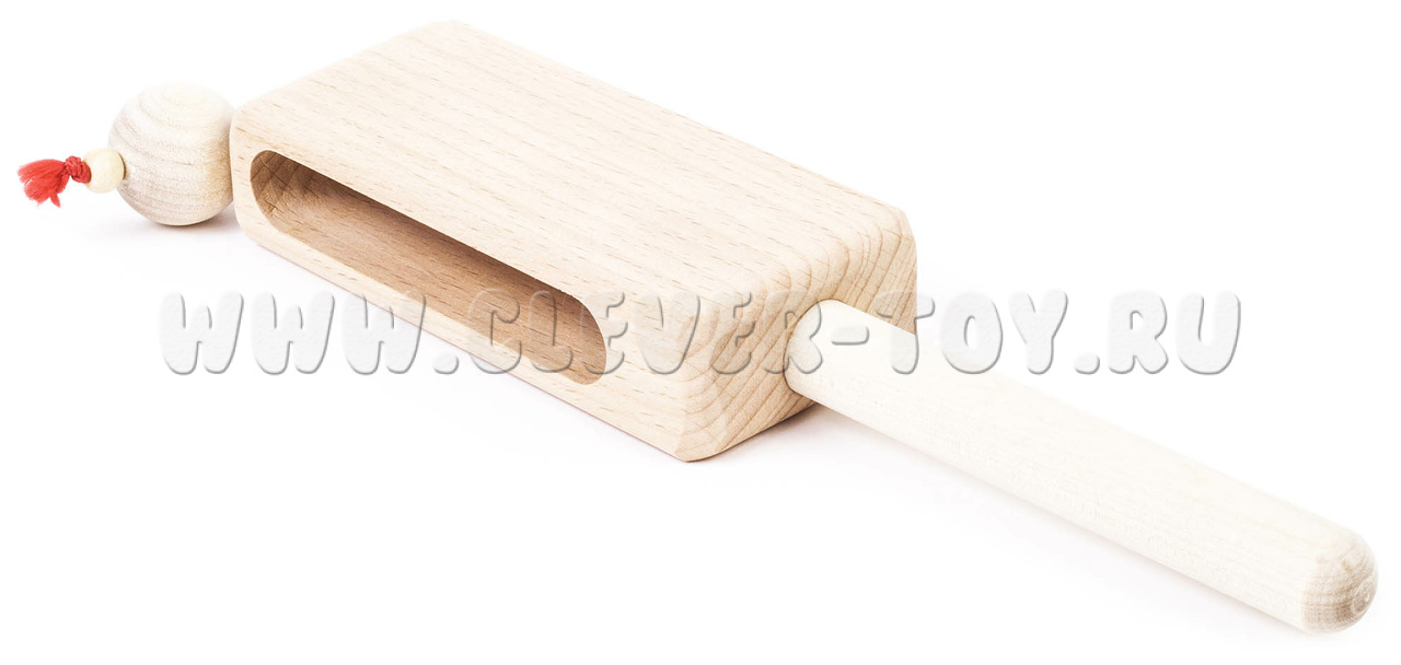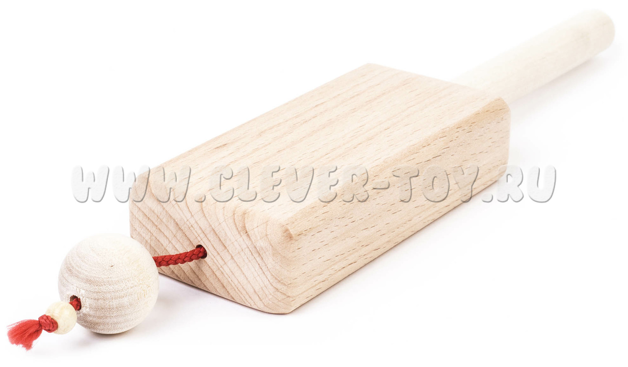Колотушка представляет собой деревянный брус 30х50х115 мм. На верхней торцевой части бруса на капроновом шнуре крепится деревянный шарик диаметром 25 мм.