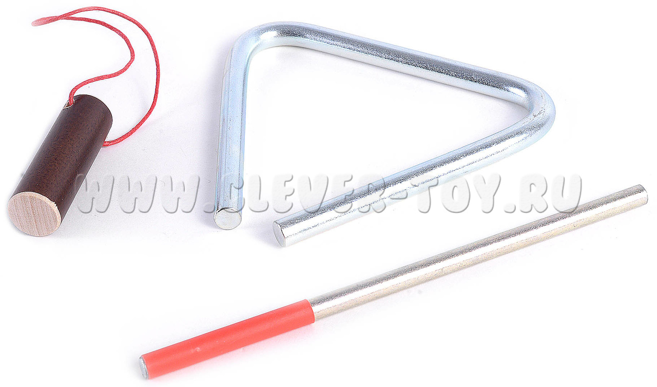 Треугольник выполнен из стали диаметром 8мм, длина стороны - 10см. Гальваническое покрытие не ухудшает качество звука и не разрушается при механическом воздействии. Ударная палочка из нержавеющей стали.