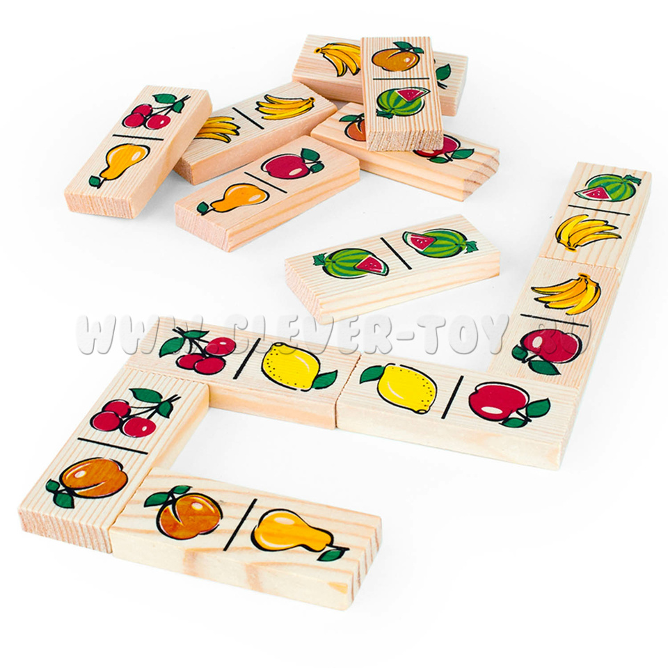 На фишках изображены фрукты и ягоды (вишня, бананы, арбуз, абрикос, лимон, яблоко, груша).