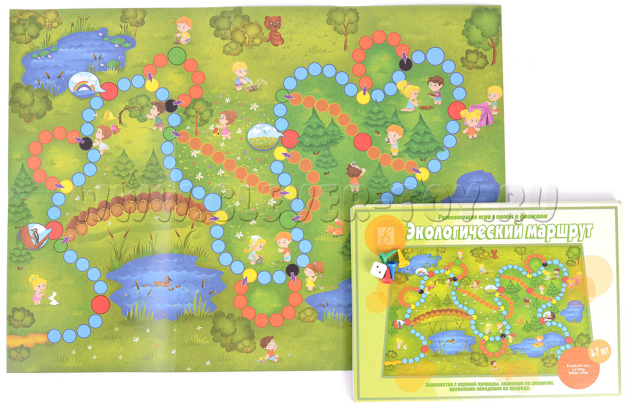 Если фишка остановилась на красном круге, нужно пропустить ход и понаблюдать за природой. Выигрывает тот из детей, кто дойдет до финиша первым.
