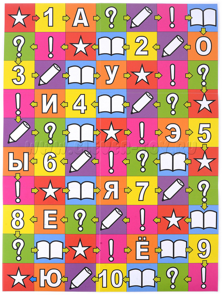 Второй режим использует поле для тренировки внимания и памяти. Предложите ребенку найти все звездочки (все цифры, все буквы, все знаки вопроса и т.д.). Если играет несколько детей, выигрывает тот, кто найдет все свои значки быстрее других и без ошибок.