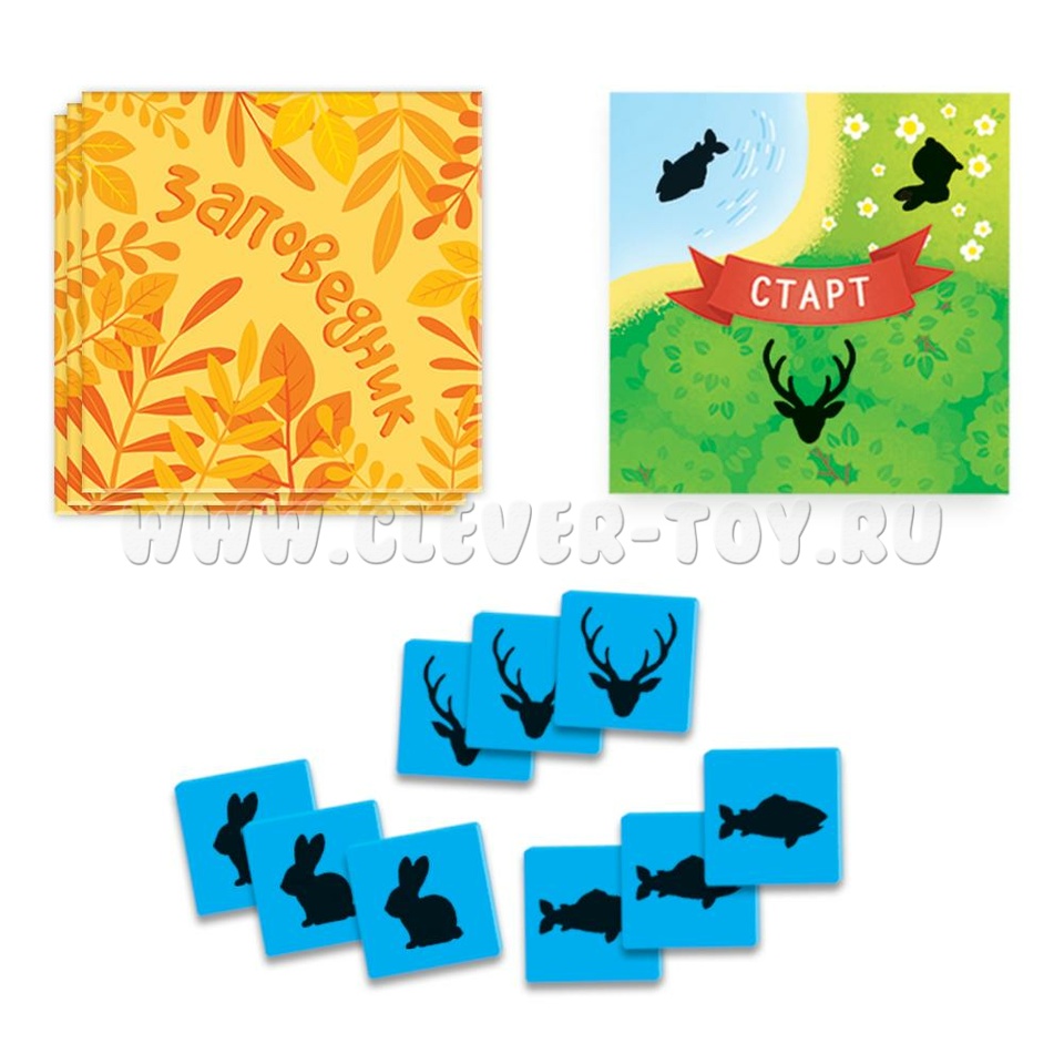 • 48 карточек с частями Заповедника (полянки, леса, озёра);