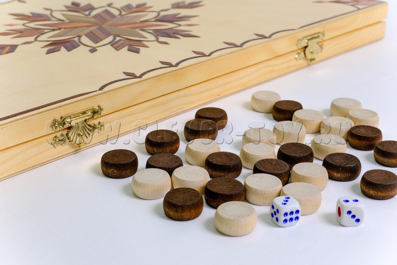 Фишки изготовлены из древесины березы и покрыты парафином.
