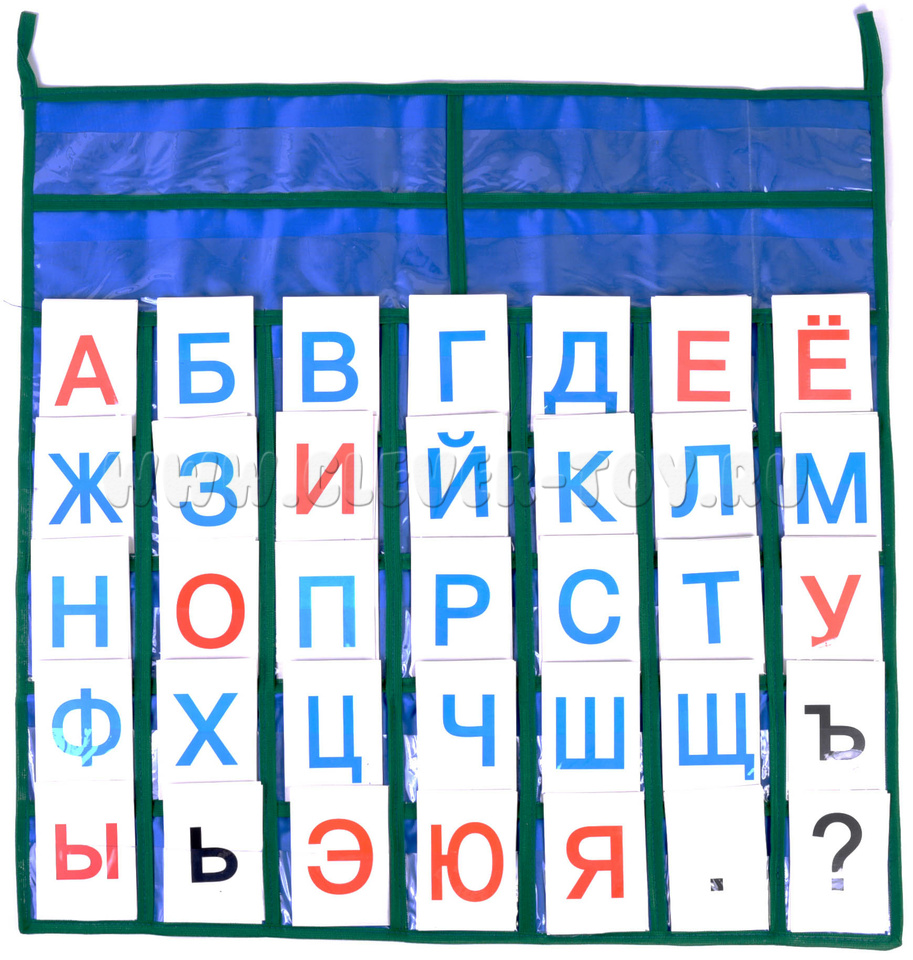 35 прозрачных кармашков (ширина 8 см) для букв и знаков,