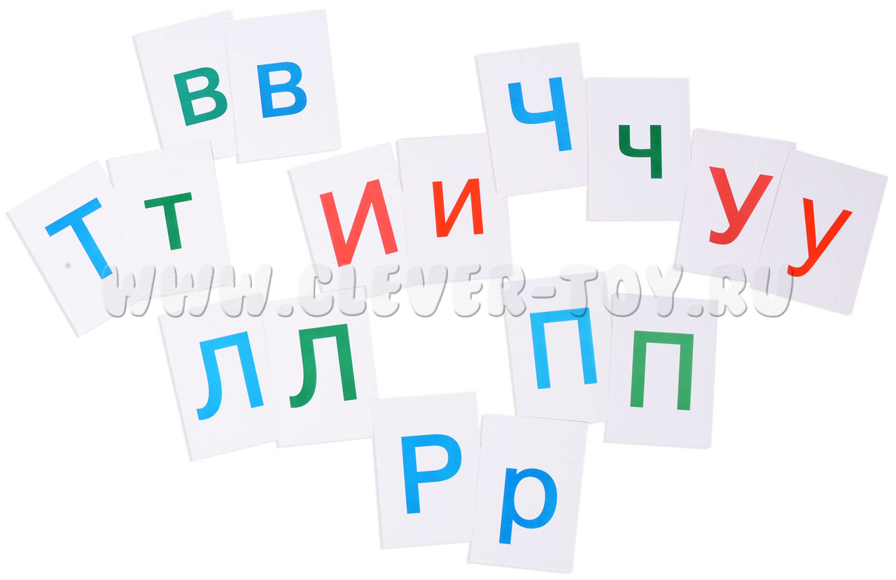 Карточки с буквами (заглавными и строчными), знаками 4 цветов из картона (7*10 см) общим количеством более 180 шт.: