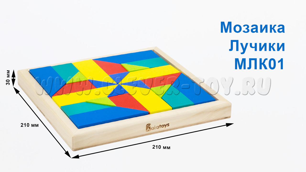 Конструктор-мозаика «Лучики» состоит из 24 элементов разного размера и форм. Все элементы выполнены из экологичного материала – берёзы, тёплые и приятные на ощупь. Окрашеныбезопасными яркими красками (синий, голубой, жёлтый, красный, зелёный, сиреневый). Все элементы конструктора помещаются в специальную рамку-вкладыш для удобного хранения.