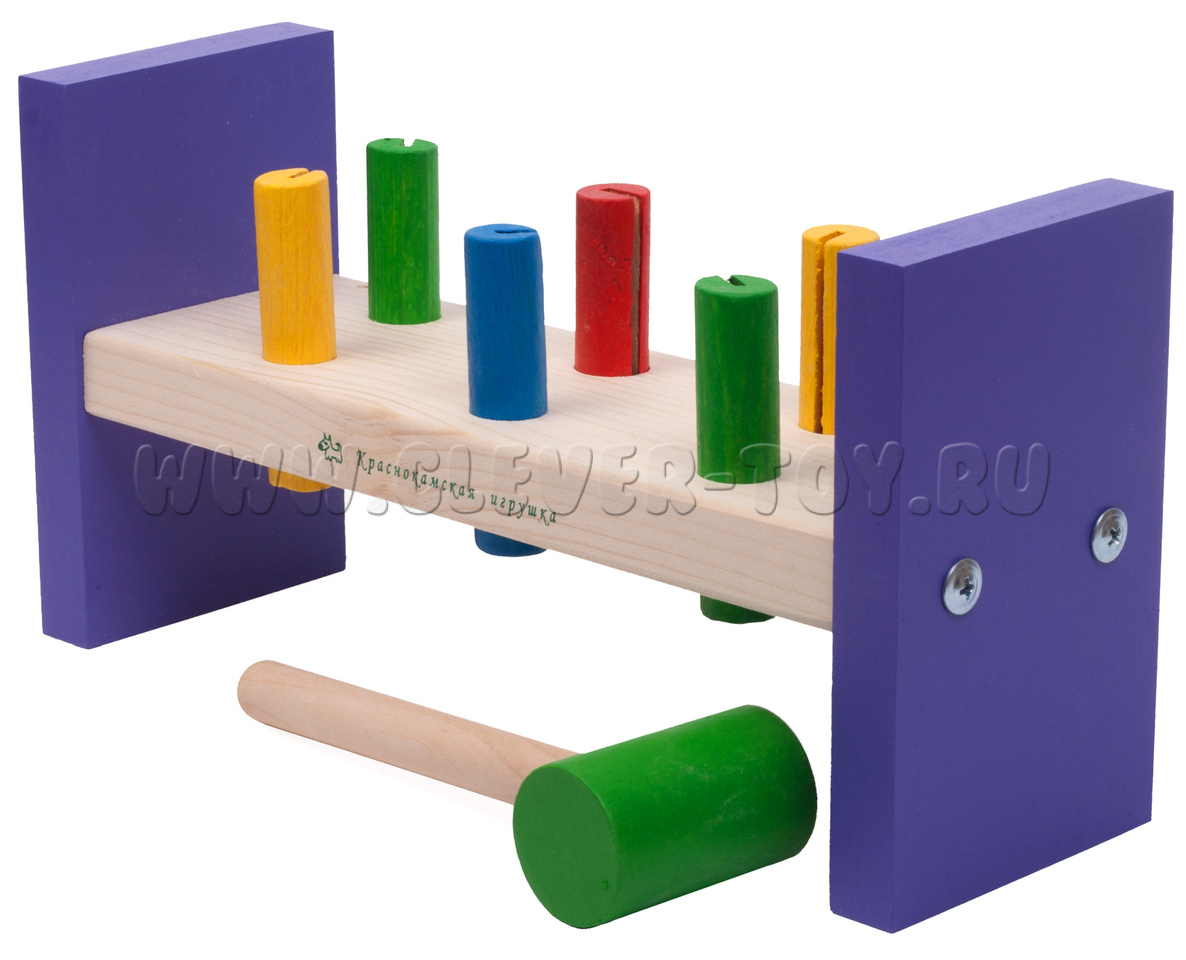 Деревянная стучалка - очень полезная игра, с помощью нее малыш научится различать цвета, считать до 6, и станет намного спокойнее и усидчивее, так как приложит много усилий чтобы забить колышки. Ребенок снимет напряжение и излишнюю активность, получая массу удовольствия.