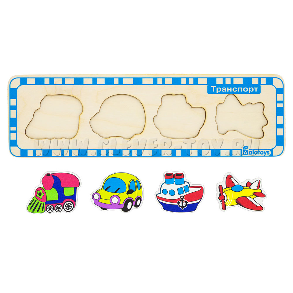 Пазл деревянный "Транспорт" (поезд, машина, корабль, самолет)