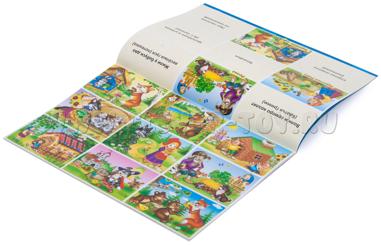 • содержит блок заданий, посвящённый сказкам и потешкам с героями-животными («Волк и семеро козлят», «Репка», «Жили у бабуси два весёлых гуся», «Курочка Ряба», «Колобок», «Цыплёнок и утёнок», «Сорока-ворона», «Про лисичку со скалочкой», «Теремок», «Маша и медведь», «Три поросёнка», «Красная шапочка», «Пряничный домик», «Ко в сапогах», «Два жадных медвежонка»);