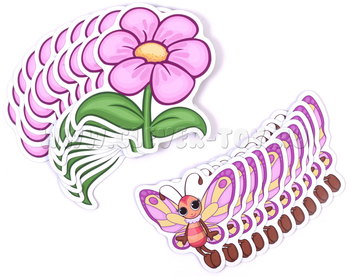 Посмотрите, какой дивный летний луг может получиться из нашего нового набора магнитных карточек «Бабочки и цветы». Он предназначен для устного счёта, которому начинают обучать уже в старших группах детских садов. В наборе 20 карточек: 10 бабочек и 10 цветочков. В пределах двадцати можно складывать и вычитать.