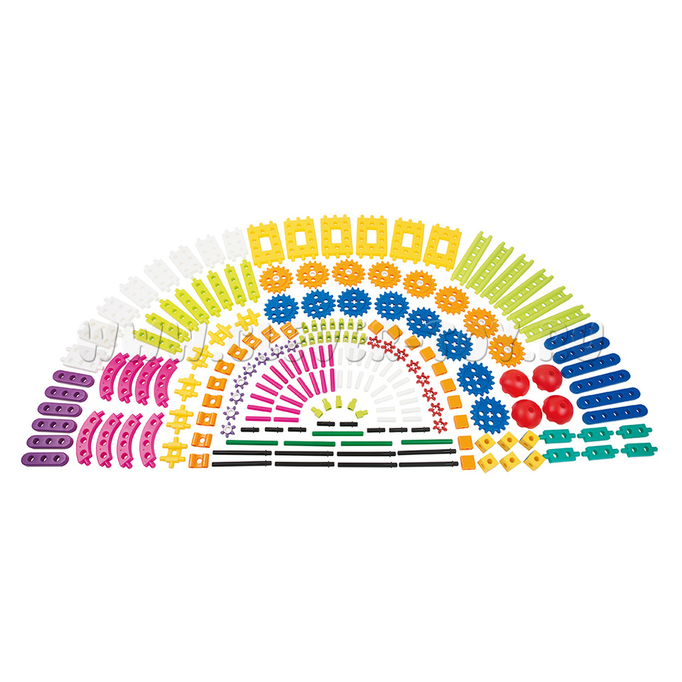 - Многообразие вариантов: В набор входят шестеренки разного диаметра и количества зубьев, что дает возможность создавать разнообразные механизмы.