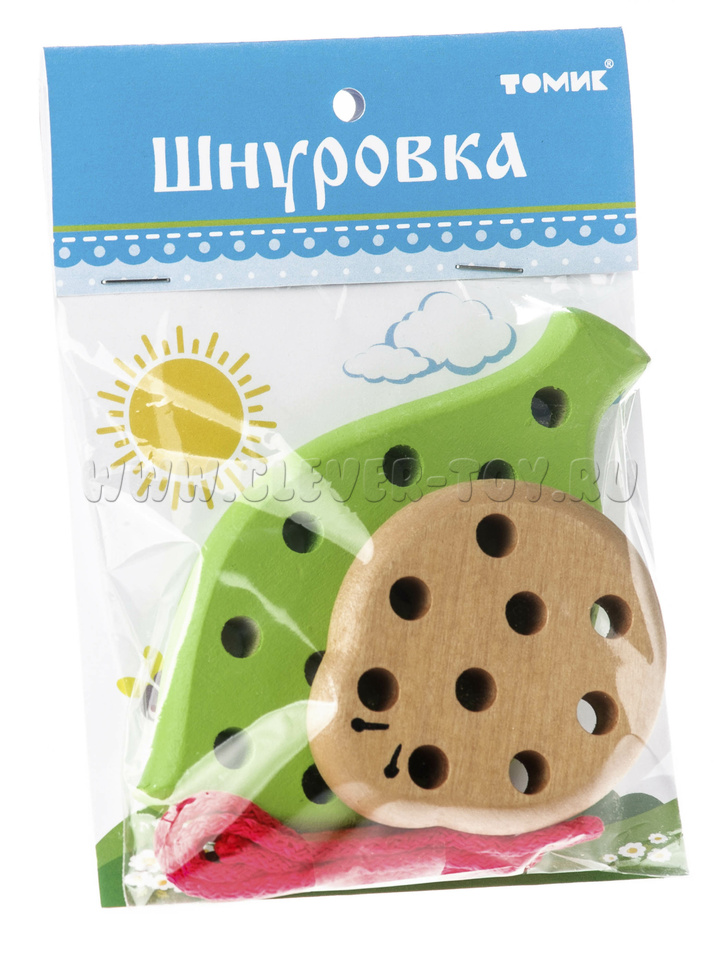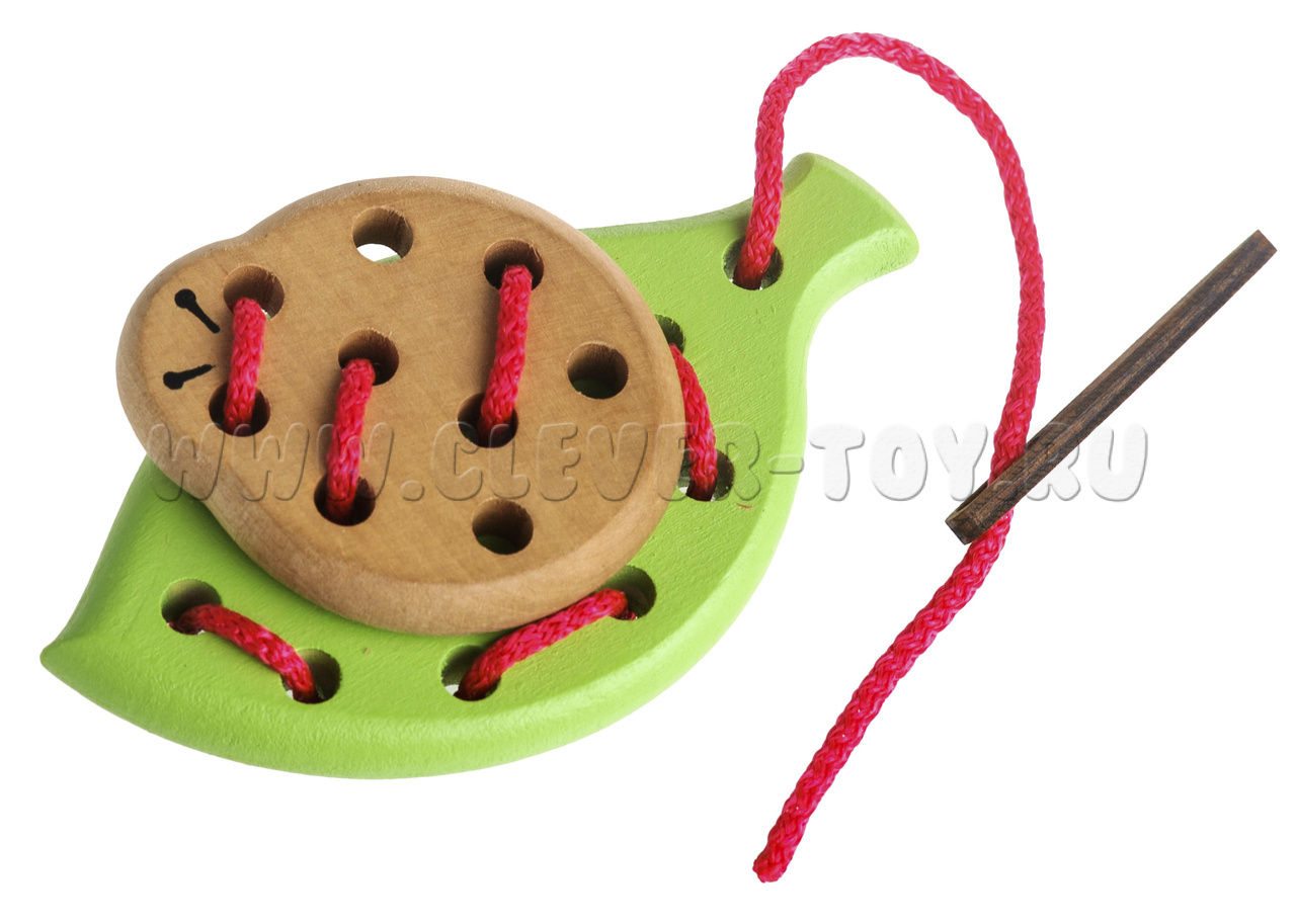 Состоит из иголки, шнурка, и двух деталей с отверстиями для иголки.