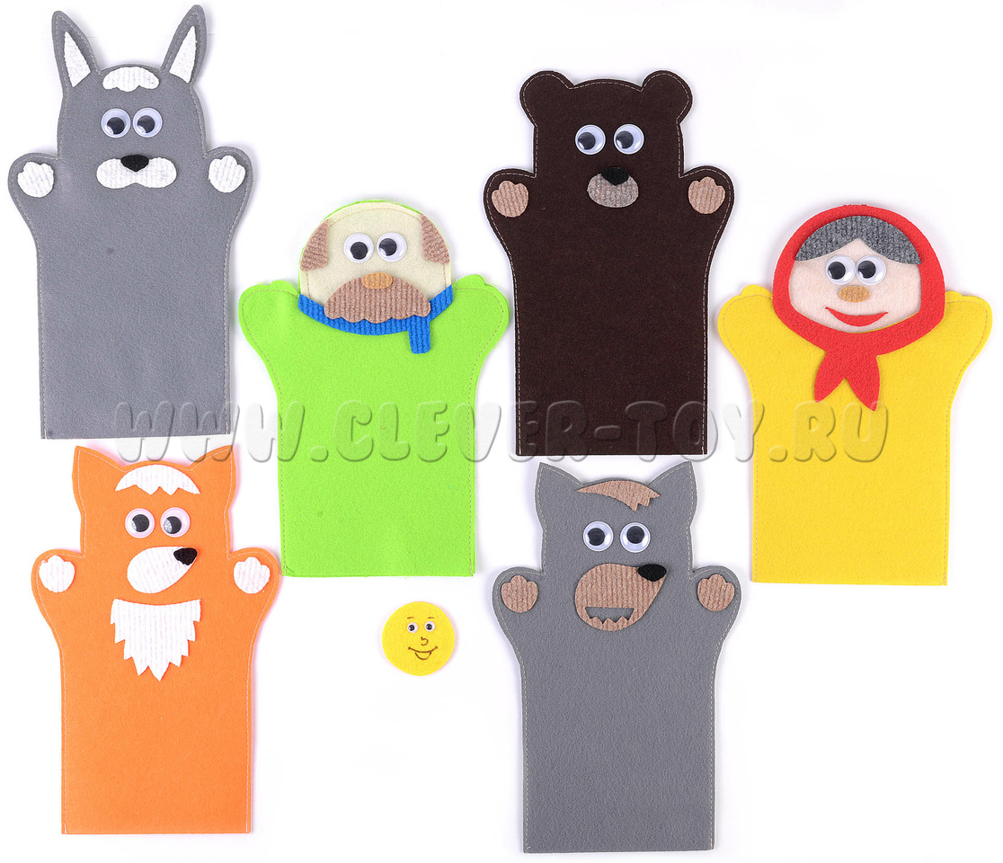 Героев можно использовать при чтении книжки, превращая сказку в анимированное представление. Пусть ребёнок сам покажет, как прыгает зайчик, как крадётся лисичка, как говорит медведь, как катится колобок.