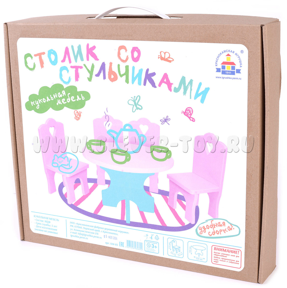 Яркий набор кукольной мебели отлично подойдет для сюжетно-ролевых игр с игрушечной посудой, продуктами, куклами, плюшевыми игрушками.