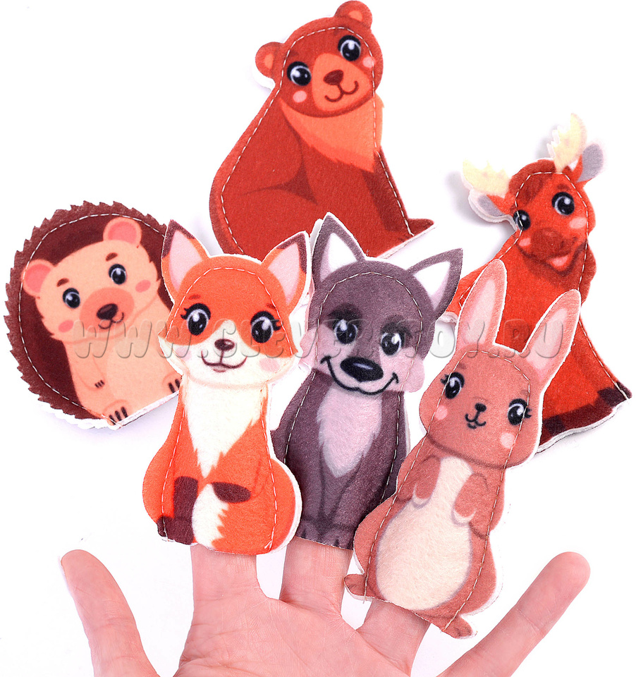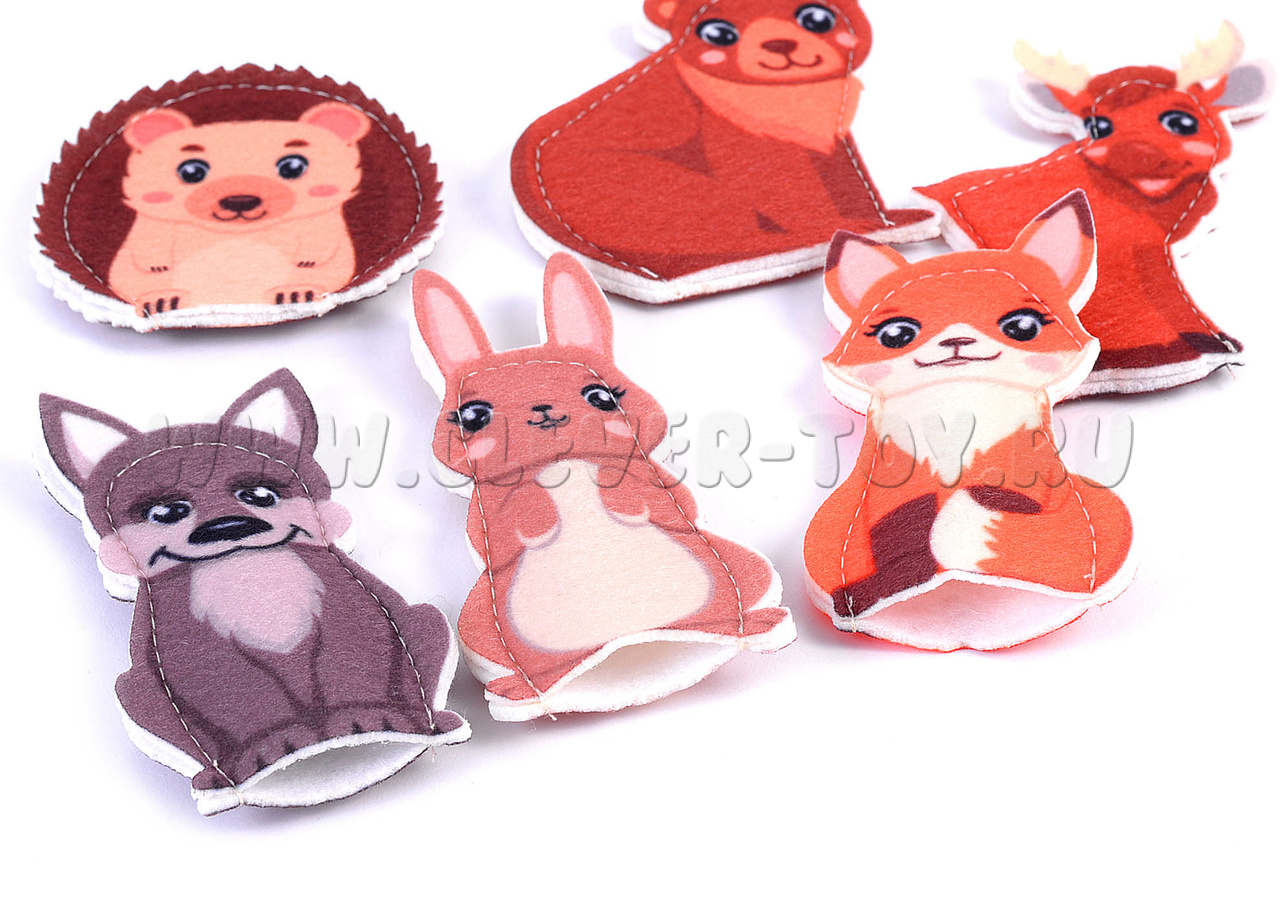 Пальчиковый театр Дикие животные (6 элементов, фетр)