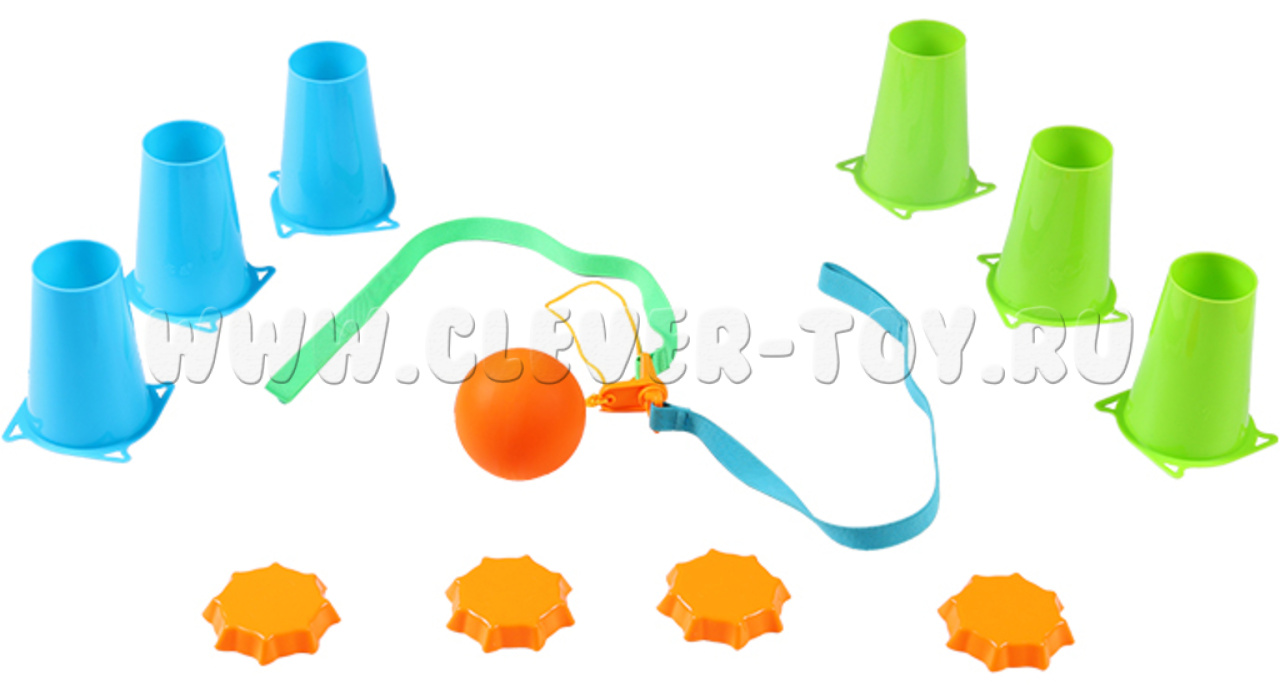Игровой набор "Эстафета" состоит из кеглей и мячика, подвешенного на ремнях. Играют парами.