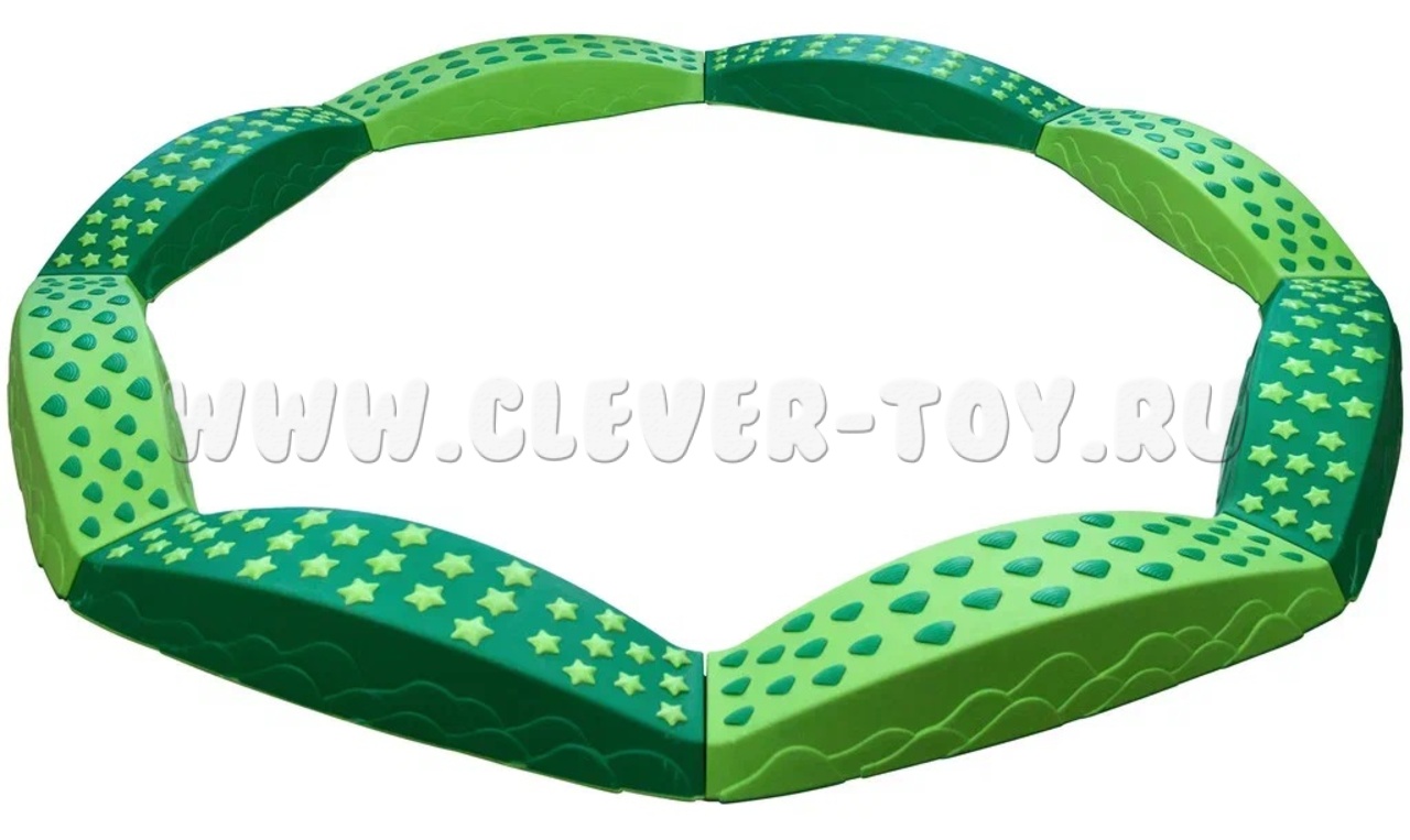 Спортивный инвентарь "Тактильная дорожка» состоит из 8 цветных деталей (сине-голубого цвета), которые можно соединить между собой в замкнутые пути, в форме кольца.