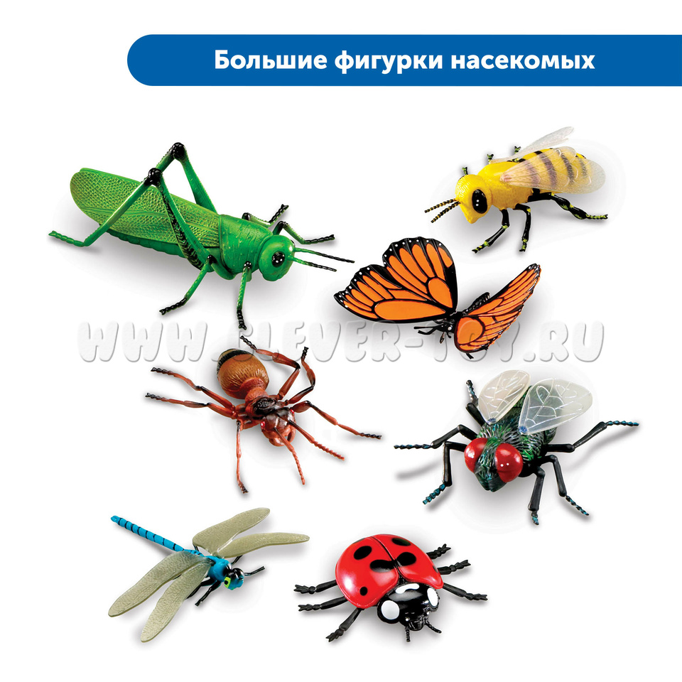 • Большие фигурки насекомых 7,5-15 см (Кузнечик, Муравей, Бабочка, Муха, Пчела, Стрекоза, Божья коровка)