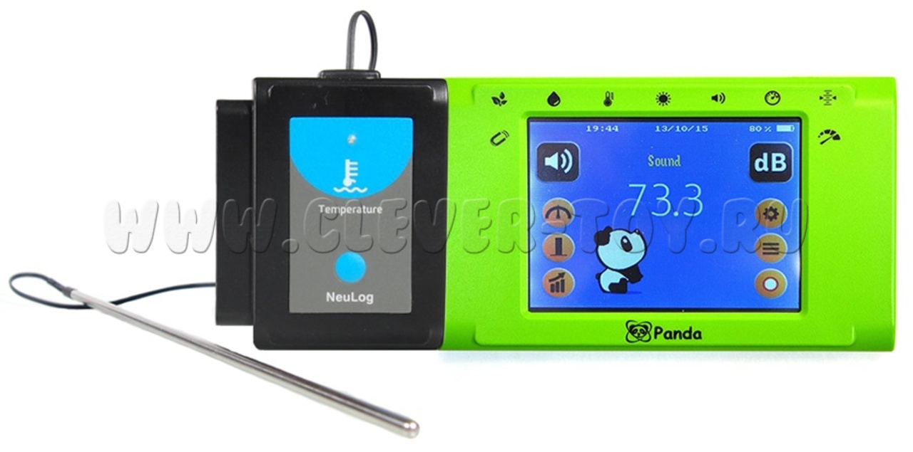 Цифровой измерительный модуль (мультидатчик) PANDA представляет собой автономную, полностью готовую к использованию мобильную естественнонаучную лабораторию с цветным сенсорным дисплеем, процессором, памятью, аккумуляторной батареей и 9-ю встроенными цифровыми датчиками: температура окружающей среды, свет, звук, барометр, высота над уровнем моря, влажность, точка росы, ускорение, магнитное поле. Мобильная лаборатория PANDA специально разработана для начальной школы и дошкольного образования, учитывает психофизиологические особенности детей дошкольного и младшего школьного возраста, может успешно использоваться в рамках учебной, внеурочной, проектной и исследовательской деятельности, как в классе, так и вне помещения. Модуль PANDA интегрируется со всей линейкой цифровых измерительных модулей PROLog, поэтому комплект может быть дополнен для расширения потребительских возможностей. В состав комплекта включен ЦИМ PROLog "Температура", позволяющий измерять температуру жидкостей, сыпучих сред и других материалов.