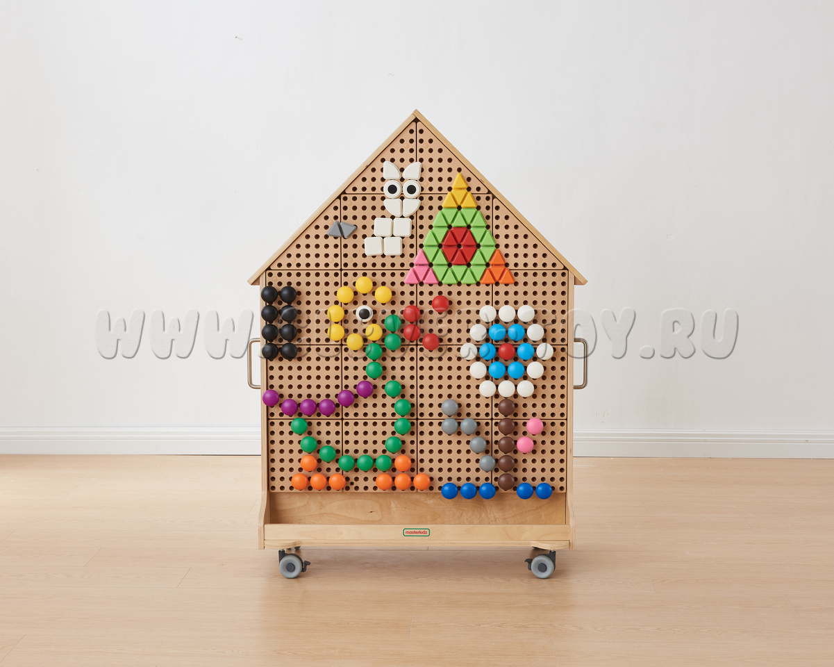 Внимание: колышки, сокровища, шнуровки, винты, кинетические треки, развивающие панели и другие комплекты для STEM-стены приобретаются отдельно.