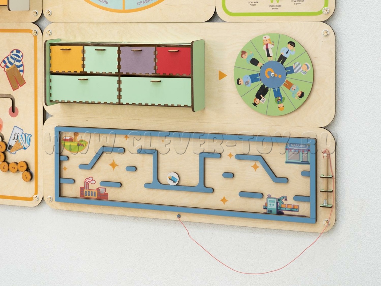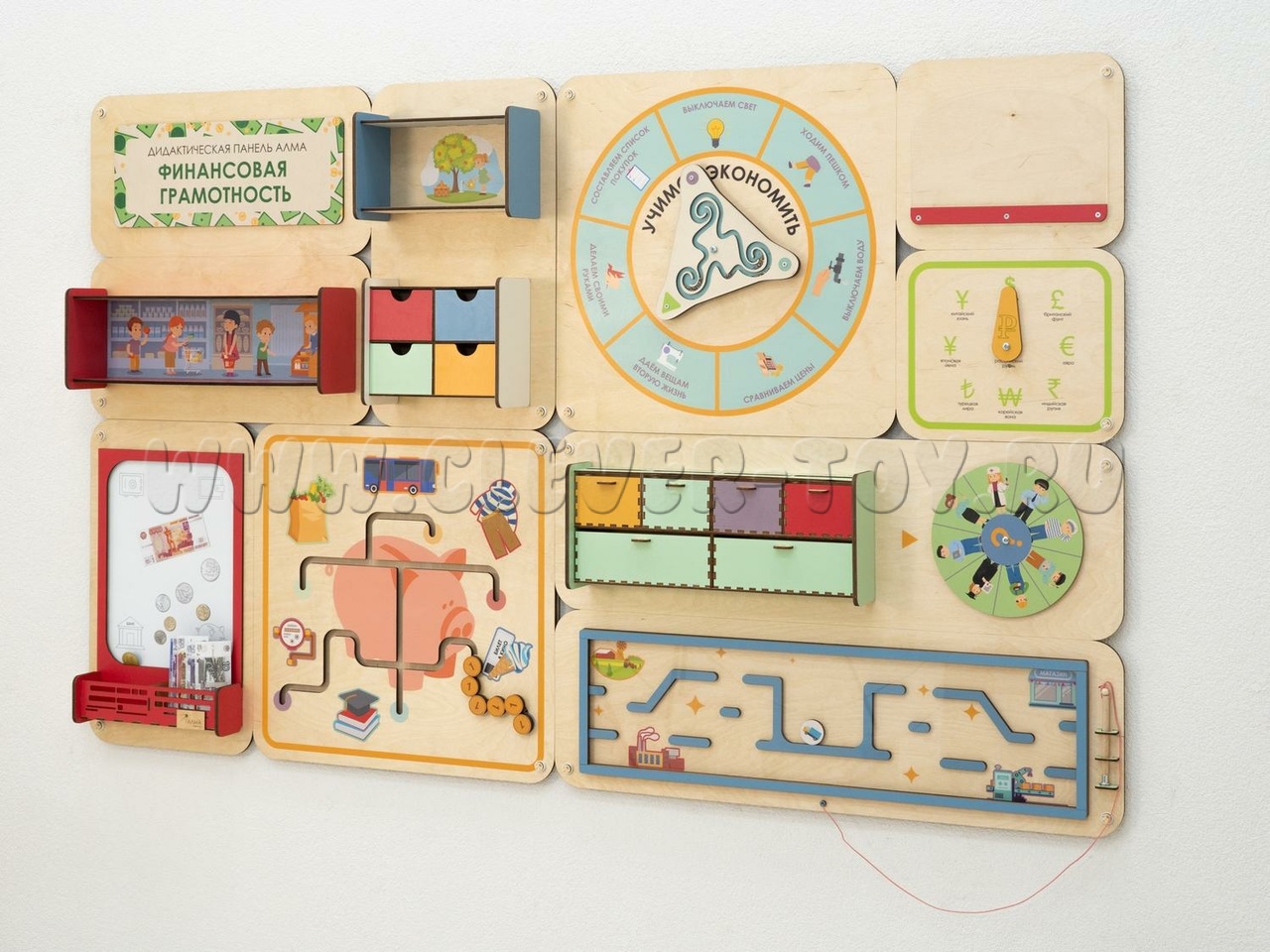 Образовательно-развивающая настенная панель для обучения дошкольников в детских учебных учреждениях основам финансовой грамотности. Игровые элементы по системе Монтессори развивают мелкую моторику детей, а подробное методическое руководство помогает педагогам в проведении занятий. Подходит для оснащения детских садов и учреждений дополнительного детского образования.